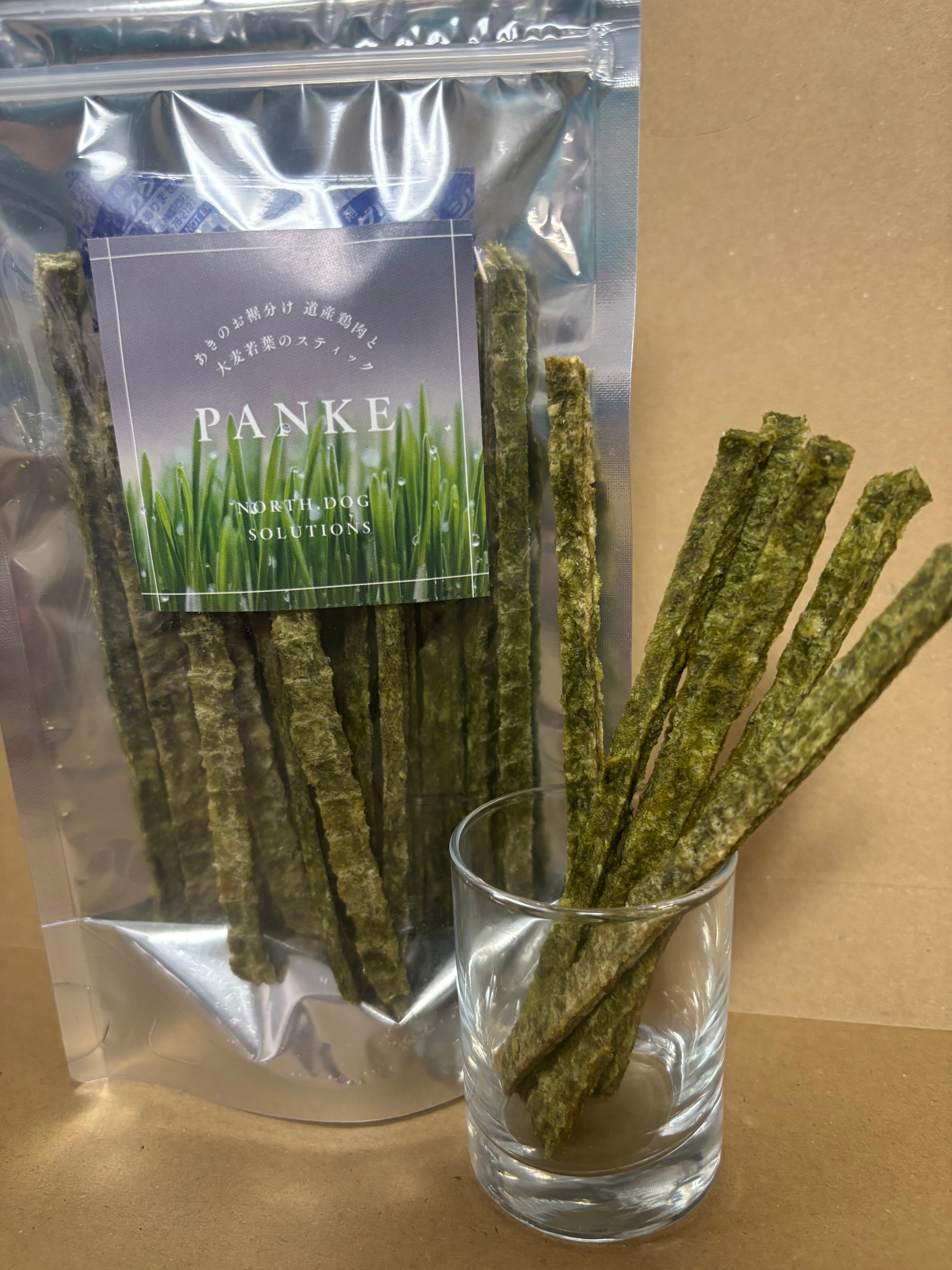 鶏肉と南幌町産大麦若葉のおやつ